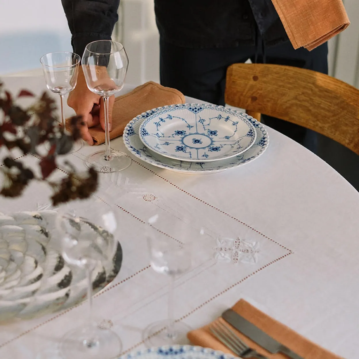 Proposed as The Royal Danish Porcelain Factory trademark in 1775 by Queen dowager Juliane Marie, every piece of Royal Copenhagen porcelain is instantly recognised by the three blue waves on its underside symbolising the Sound, the Great Belt and the Little Belt – the three main waterways of Denmark.