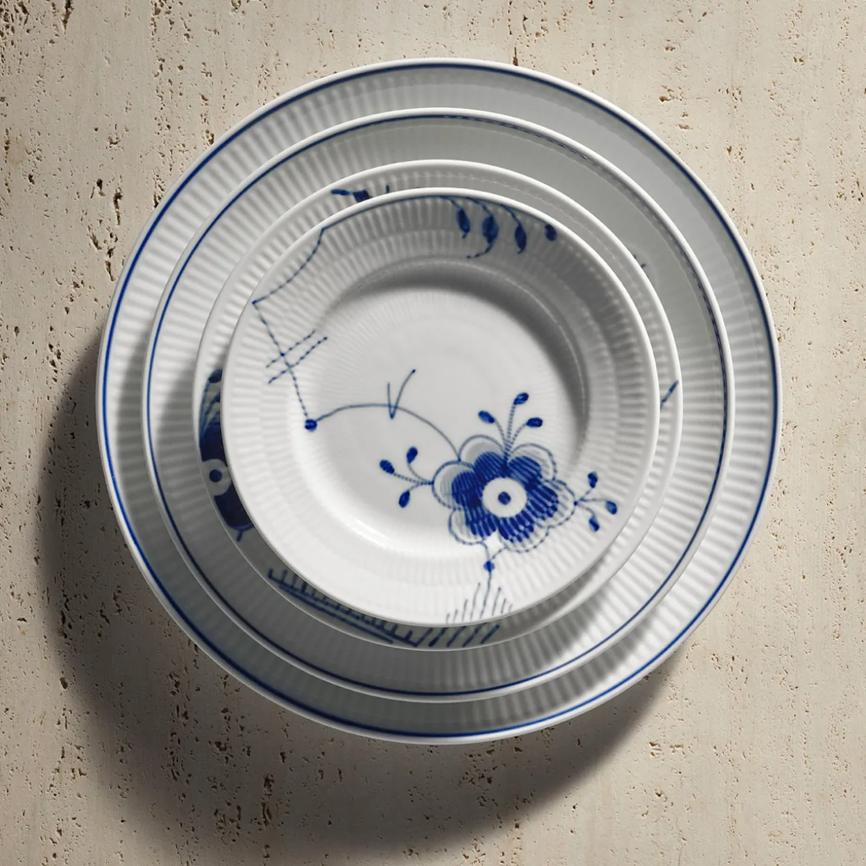 A beautiful chrysanthemum is the focal point of this 17 cm plate decorated with Blue Fluted Mega Decoration No. 6. The plate is beautiful by itself but in a combination with plates in Blue Fluted Mega Decoration No. 2 or any other Royal Copenhagen collection. Blue Fluted Mega is comfortingly familiar yet surprisingly refreshing. Born from a bold reinterpretation of the iconic pattern of Blue Fluted Plain, Blue Fluted Mega captivates with graphic and magnified sections of the original mussel painted pattern. Since its creation in 2000, Blue Fluted Mega has grown to become a true, new classic in Danish design. The eye-catching collection is beautiful on its own or in combination with other Royal Copenhagen dinner service.