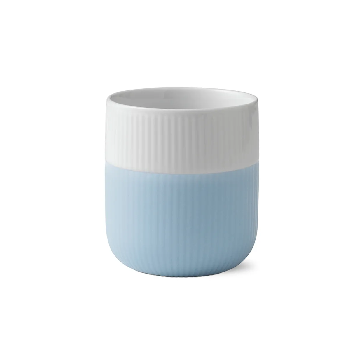 A soft, light blue colour creates a calming harmony between the silicone and the white porcelain on this Fluted Contrast mug. The 35 cl mug, which is adorned with tactile flutes, is ideal as a tea mug or a coffee mug. Fluted Contrast represents a perfect fusion of aesthetics and functionality. The design is elegant and contemporary, created with a deep respect for Royal Copenhagen’s history and design tradition. In the making of the mugs, silicone was introduced to Royal Copenhagen for the first time. Silicone is practical when holding a warm mug and adds a touch of contemporary informality and a rainbow of colours to the world of royal Danish porcelain.